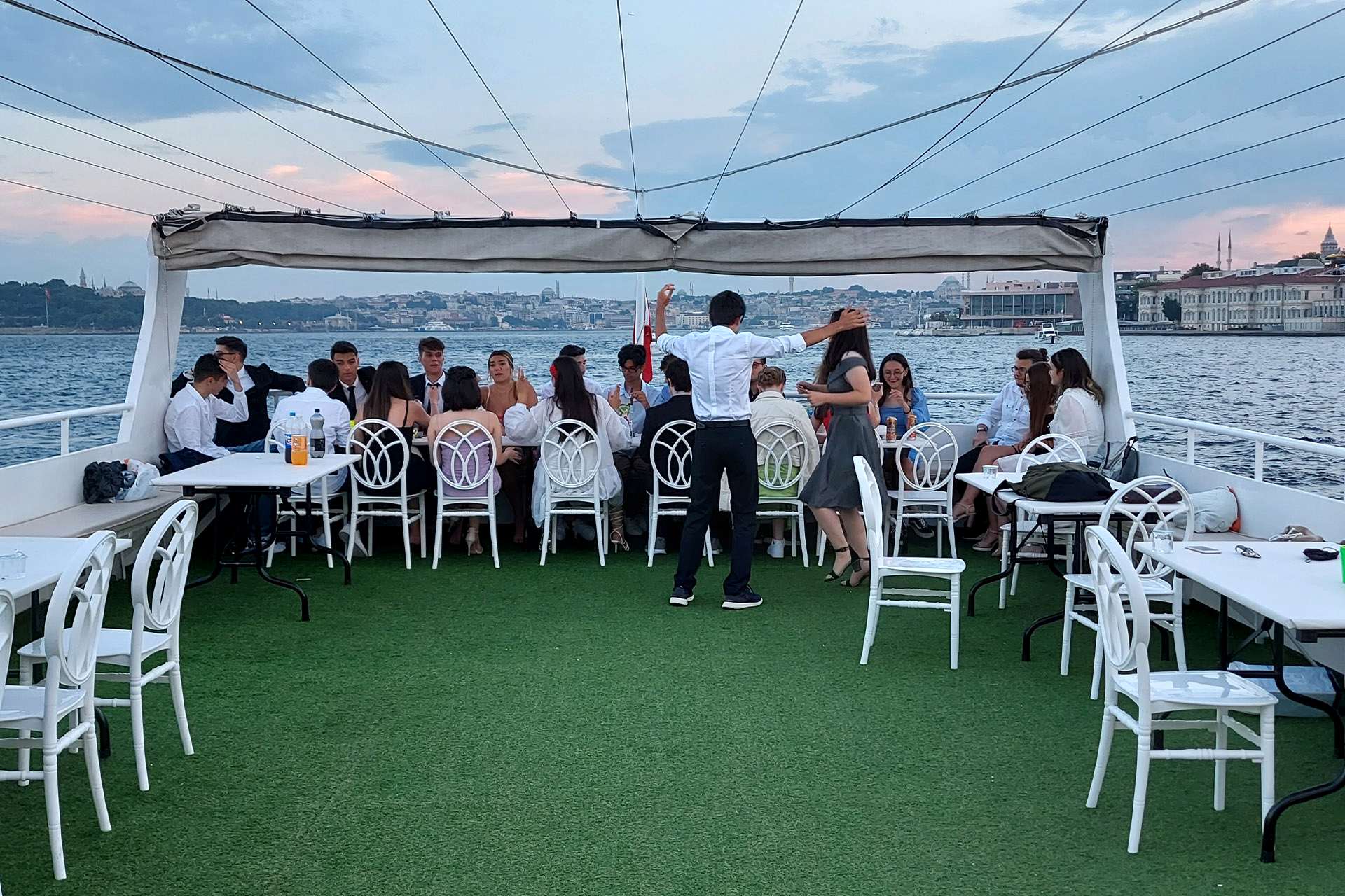 İstanbul'un büyüleyici Boğazı'nda 100 kişilik tekne kiralama, özel günleriniz için ideal bir seçenektir. Deniz turu, doğum günü partisi, düğün kutlaması, şirket yemeği veya özel bir etkinlik için 100 kişilik teknelerimiz konforlu ve geniş bir ortam sunmaktadır.