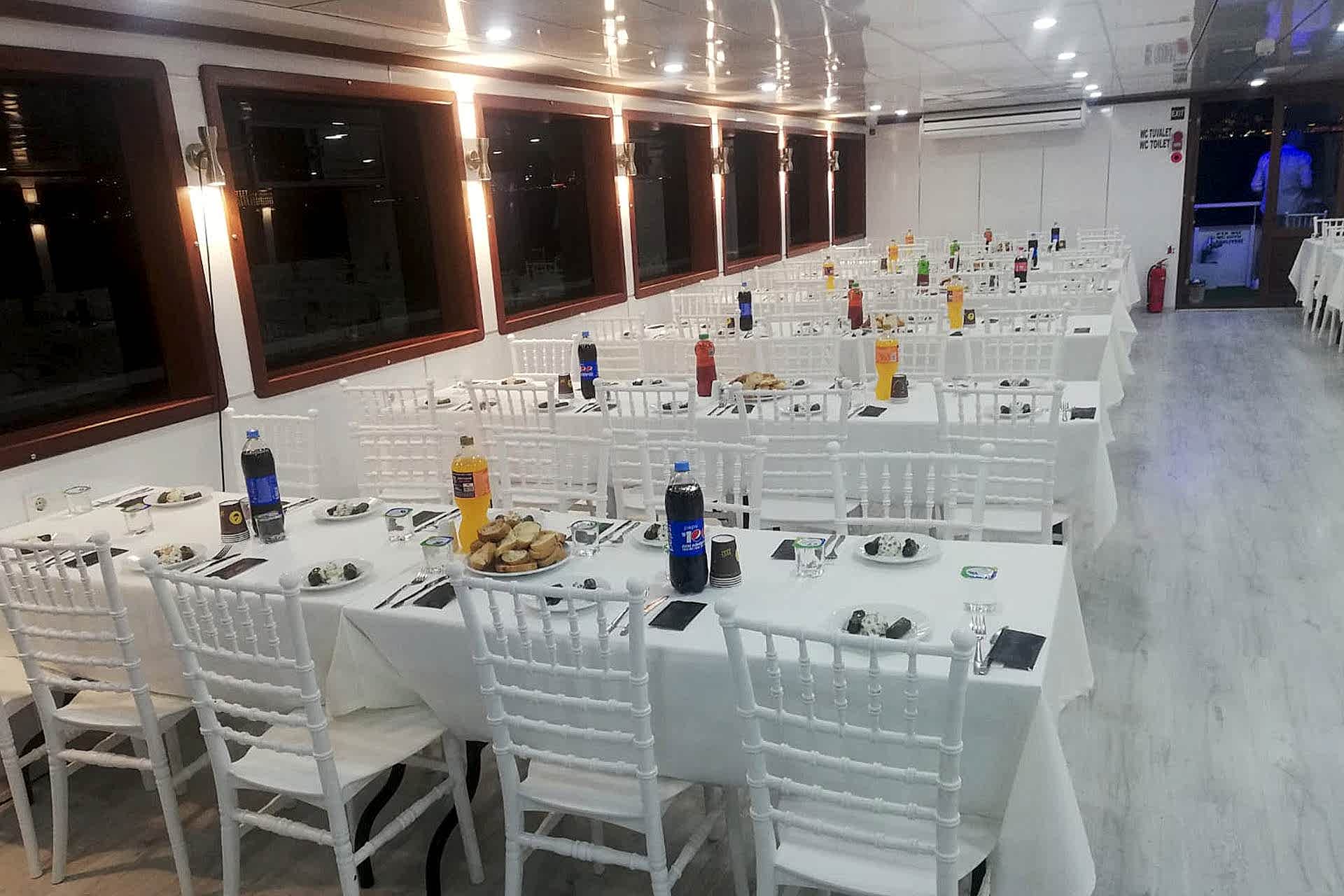 İstanbul'un büyüleyici Boğazı'nda unutulmaz bir deneyim yaşamak mı istiyorsunuz? 130 kişilik tekne kiralama hizmetimiz ile kalabalık gruplar için mükemmel bir seçenek sunuyoruz. Doğum günü partisi, düğün kutlaması, şirket yemeği, özel etkinlik veya sadece eğlenceli bir deniz turu için ideal olan 130 kişilik teknelerimiz, geniş ve ferah bir ortam sunarak her misafirimizin konforunu en üst seviyede tutuyor.